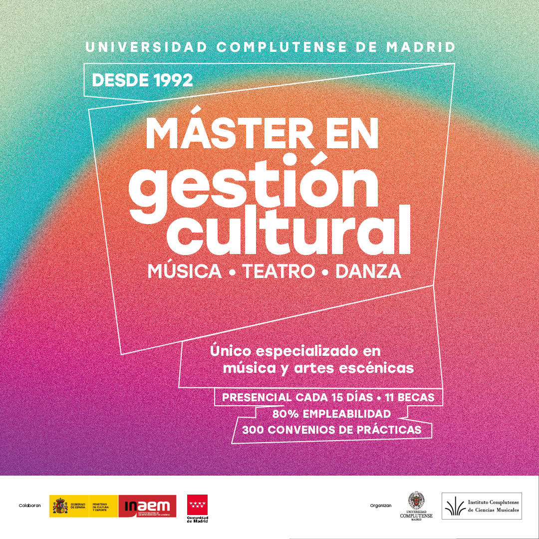 El Máster en Gestión Cultural: Música, Teatro y Danza necesita incorporar al equipo un/a coordinador/a para gestionar el área de prácticas curriculares y desarrollo profesional.